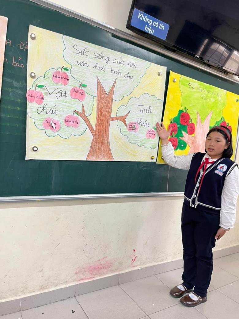 Một hoạt động khác cũng mang lại hiệu quả tích cực là trò chơi ghép thẻ kiến thức. Giáo viên chuẩn bị các thẻ thông tin về phong tục, tín ngưỡng, tiếng nói, chữ viết… và yêu cầu học sinh ghép đúng nội dung với ý nghĩa tương ứng. Hoạt động này giúp học sinh ghi nhớ kiến thức một cách trực quan và logic.