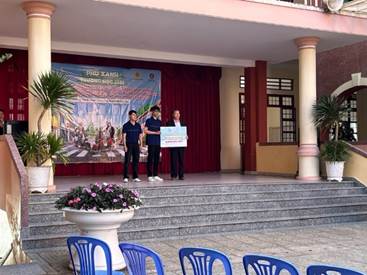 Bên cạnh hoạt động giáo dục, tinh thần tương thân tương ái cũng được lan tỏa mạnh mẽ. Đại diện đơn vị đồng hành - VinFast An Phát Đà Lạt đã trao tặng những phần quà ý nghĩa cho Quỹ Khuyến học của nhà trường.